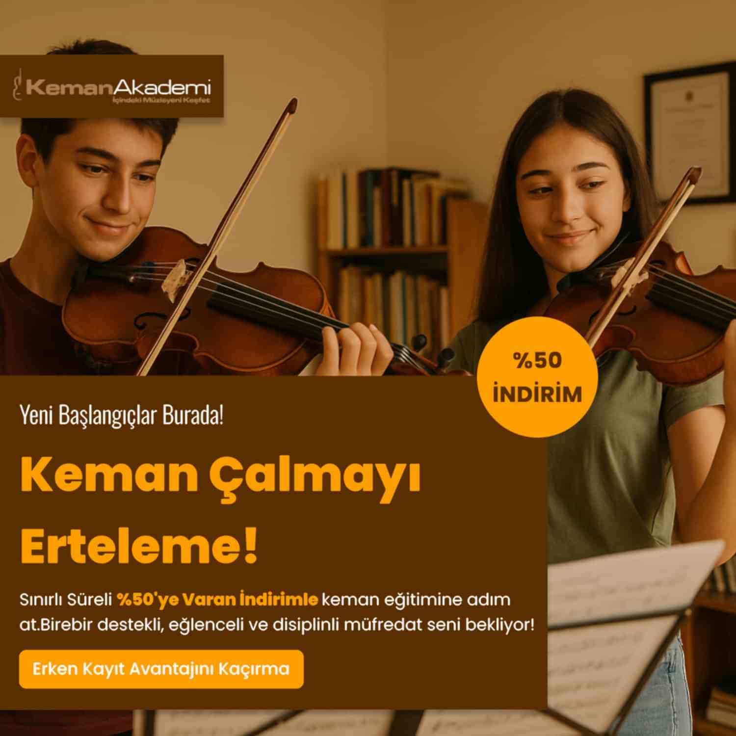 Kendiniz ya da çocuklarınız için keman dersi almak istiyorsanız hemen eğitim danışmanlarımızdan bir randevu alın, hem eğitmeninizle tanışın hem de kurumumuzu yakından tanıyın! Müzik sınıflarımız, teknolojik yeterliliğimiz, sanatsal atmosferimiz ve güler yüzlü yaklaşımımızla hayallerinize giden yolu kolaylaştırmak için varız…